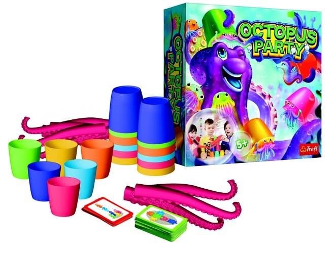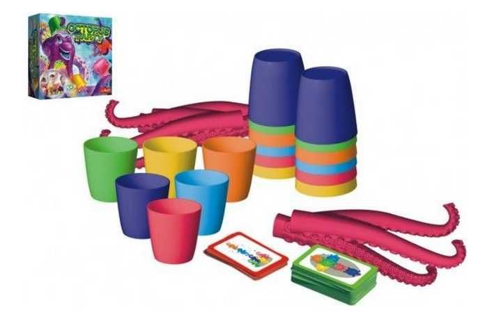 S chapadly na rukou se snažte uložit barevné pohárky přesně podle předlohy na kartičkách.