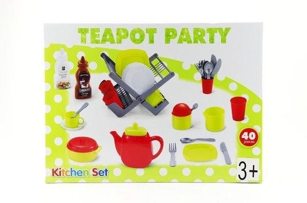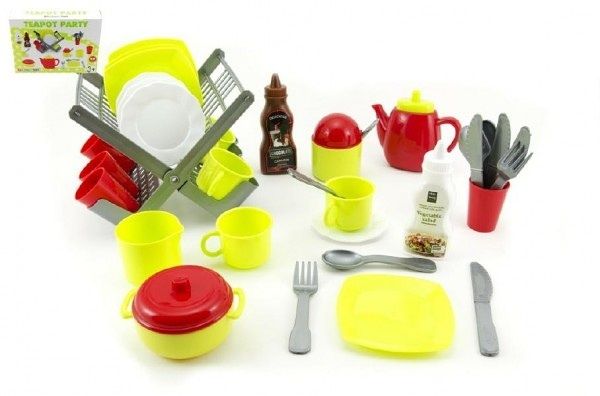 Odkapávač s nádobím + doplňky plast 40ks v krabici 28x38x9cm