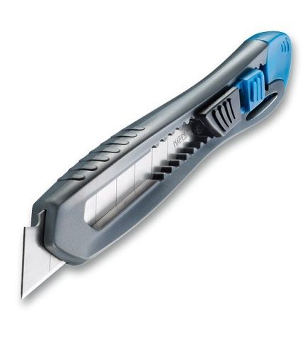Odlamovací nůž, ergonomický tvar pro pohodlné držení. Zatahovatelné odlamovací břity o šíři 18 mm. Integrovaná pojistka.Záruka 5 let.