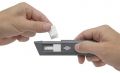 Vlastnosti: výsuvný; závěsné oko; bezpečné; vhodné pro leváky i praváky; výměna čepele bez nástrojů; nevodivé; nemagnetické; 10x ostřejší než ocelová čepel; certifikát TÜV / GS;
