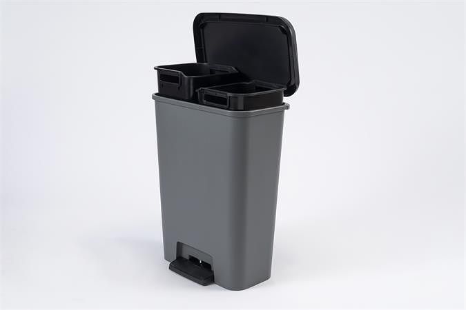 Odpadkový koš "Compatta Duo", tmavě šedá, pedálový, hranatý, 2 x 23 l, CURVER 249813