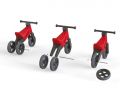 FUNNY WHEELS roste stejně, jako váš prcek. Ten začne jezdit na malém tříkolovém odrážedle, až se vytáhne, jednoduše FUNNY WHEELS zvednete o 3 cm výš a jede se dál. Až přijde čas trénovat balanc, jednoduše vyměníte dvě zadní kolečka za jedno a dítko se může začít připravovat na jízdu na kole. Jak přesně to funguje, vidíte na videu.