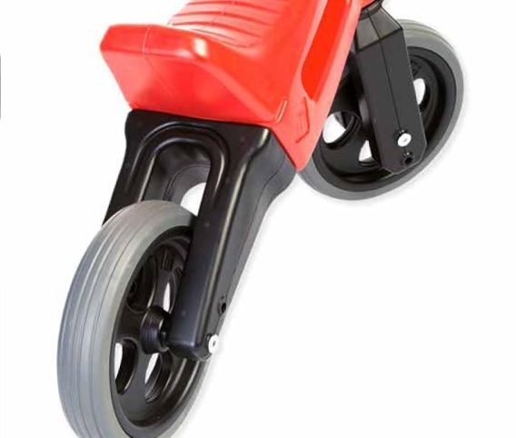 odrážedlo s pneumatikami, díky kterým má odrážedlo tichý provoz a kola se nekloužou.