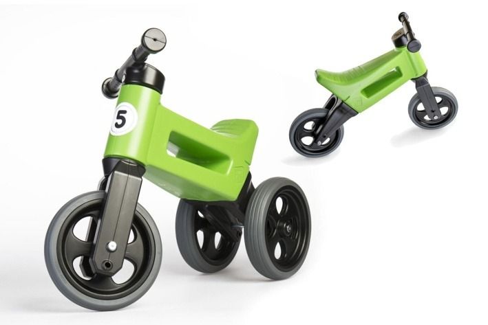 FUNNY WHEELS je originální české odrážedlo, které dokáže růst s vaším dítětem. Vzhledem k tomu, že můžete vyměnit dvě zadní kola za jedno a nastavit jeho výšku, nemusíte kupovat každý rok nové odstrkovadlo.