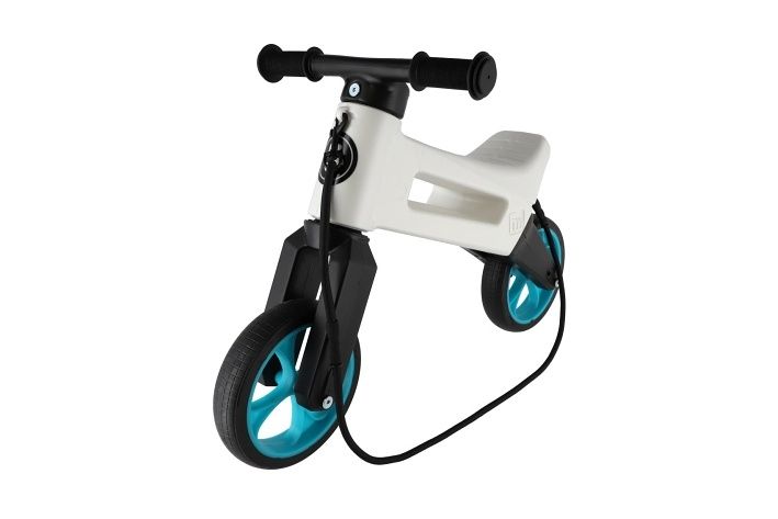Odrážedlo FUNNY WHEELS Rider SuperSport bílé/tyrkys 2v1+popruh,výš.sedla28/30cm nos.25kg