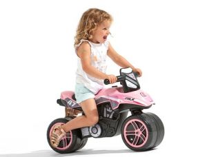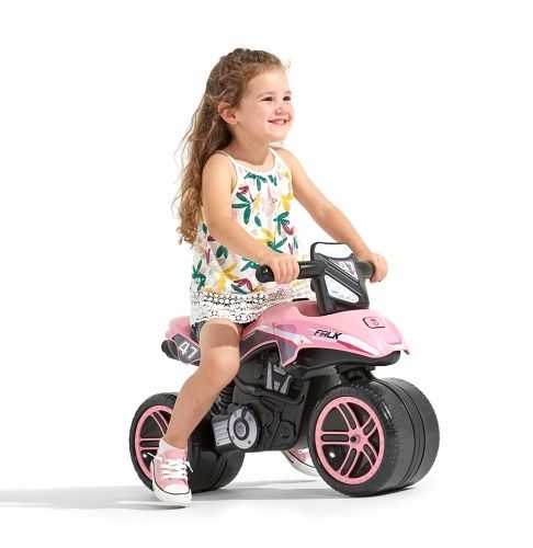 Odrážedlo Falk racing team růžové. Vhodné již od 2± let. Velikost odrážedla 75,5×40×51 cm – nostnost max. 30kg. Testováno dle evropských norem – vyrobeno ve Francii. Vyrobeno z kvalitního a odolného plastu.