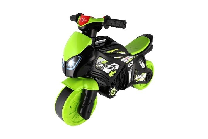 Stylové dětské odrážedlo ve tvaru závodní motorky nadchne každého malého jezdce. Moderní zeleno-černé provedení s atraktivními sportovními samolepkami dodává motorce realistický vzhled skutečného závodního stroje.