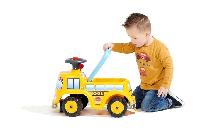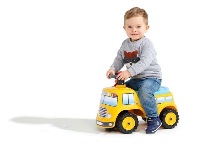 Odrážedlo školní autobus žlutý s volantem s odklápěcím sedátkem, klaksonem a funkční řadící pákou. Z vysoce kvalitního a odolného plastu. Velikost 55×30×35 cm. Věk 1+. Všechna odrážedla Falk jsou testována na 30kg – dle požadavků evropských norem. Vyrobeno ve Francii.