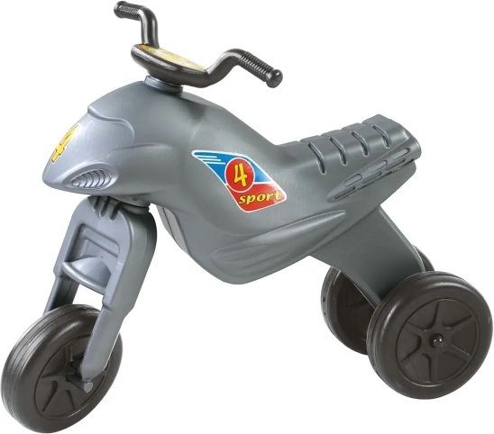 Odrážedlo Super Bike maxi. Stříbrná barva. Délka 60 cm, šířka 28cm, výška 48cm. 3 kola. Max nosnost 50 Kg.