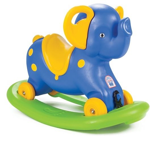 Houpací SLŮNĚ.V houpadle pevně zafixován, při vyjmutí jezdí na kolečkách ! Velikostí vhodný pro mladší děti, rozměry 75×35×50 cm.