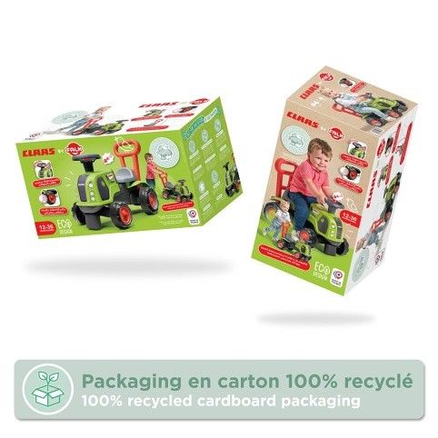 Traktor Falk Baby Claas je ideálním společníkem pro děti od 2 let. Je navržen tak, aby podporoval rozvoj motorických dovedností a rovnováhy při zábavě v interiéru i exteriéru.Tichá kola: Speciálně navržená kola pro tichý pohyb, ideální pro hraní doma i venku.Traktor je vybaven směrovým volantem pro snadné ovládání.Klakson pro ještě větší zábavu při jízdě.Široká stabilní kola – bezpečná jízda i pro začínající jezdce. Vyrobeno ve Francii z kvalitních recyklovaných plastů. Nosnost 25 kg. Doporučený věk od 12 měsíců.