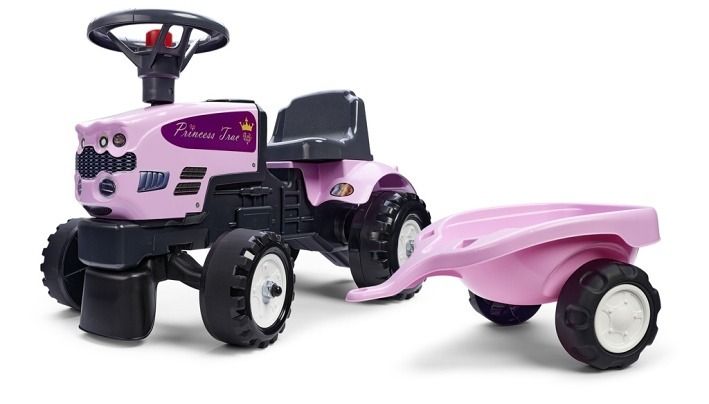 Odstrkovadlo – traktor Princess růžové s volantem a valníkem. Vyrobeno ve Francii z vysoce oddoleného a kvalitního plastu. Testováno dle evropských norem na hnotnost 30 kg. Rozměry odrážedla 97×30×37 cm.