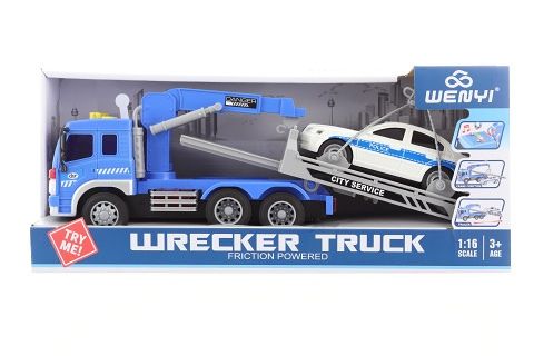Odtahovka na baterie 3xAG13, které jsou součástí balení. Rozměry balení cca 42x18x12 cm. Velikost odtahovky cca38 cm, velikost autíčka cca 16 cm. Věk 3+