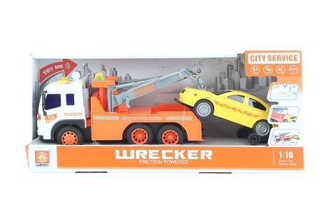 Plastové auto odtahovka na baterie v měřítku 1:16. Po stisknutí tlačítka vydává zvuky a svítí. Napájení 3x AG13/LR44 baterie - jsou součástí balení. Rozměr balení cca 42,5 x 18,5 x 11,5 cm. Věk 3+