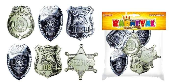 Sada policejních odznaků s 6 ks v sáčku. Perfektní doplněk k policejnímu kostýmu!