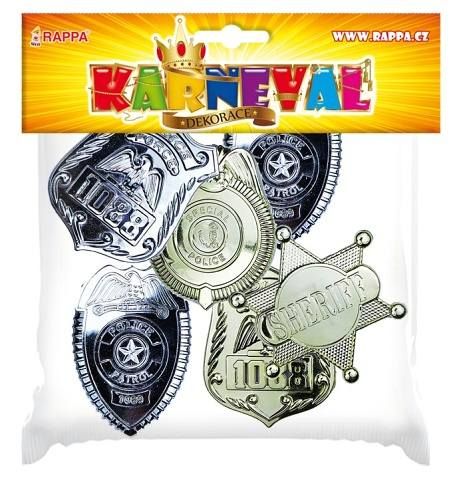 Sada policejních odznaků s 6 ks v sáčku. Perfektní doplněk k policejnímu kostýmu!