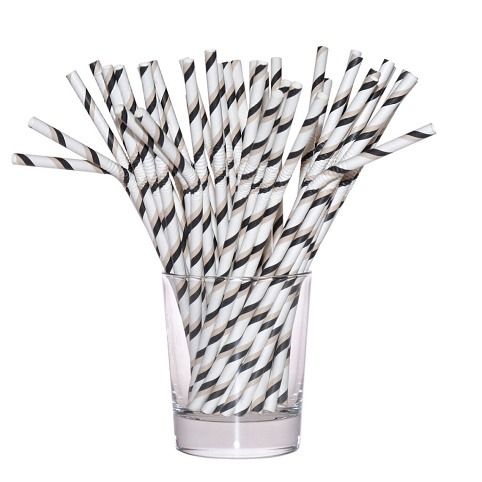 Papírová ohebná brčka Eco Friendly s černými proužky.