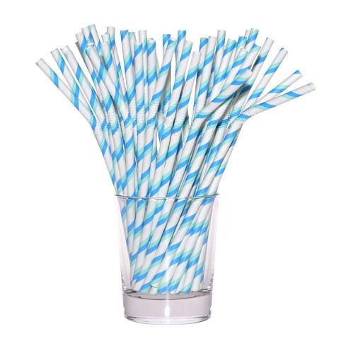 Ohebná papírová brčka Eco Friendly s modrými proužky.