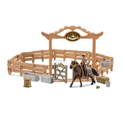 Ohrada pro koně určená nejen všem milovníkům těchto zvířat. Součásti balení jsou kromě ohrady také kůň, figurka chovatelky koní a příslušenství potřebné k chovu koní. Tato hračka je součástí kolekce Moje malá farma.