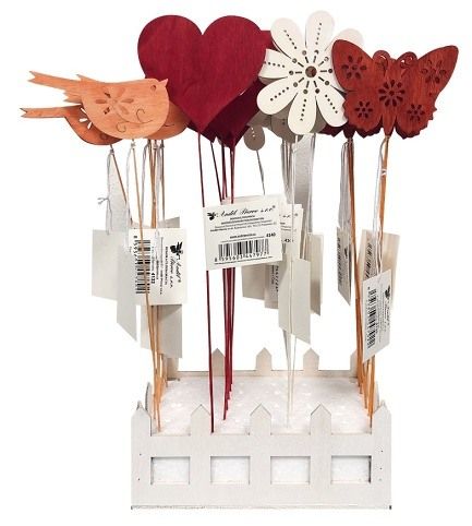 Ohrádka s barevnými dřevěnými zápichy, mix 24 ks Veselá dekorativní ohrádka s dřevěnými zápichy skvěle doplní květináč, truhlík nebo sezónní aranžmá. V balení najdete 24 kusů zápichů o výšce cca 8 cm ve čtyřech hravých motivech: motýl, ptáček, kytička a srdce (každý motiv 6×). Vlastnosti: Barevné dřevěné zápichy pro celoroční využití4 různé motivy po 6 kusechVelikost zápichu cca 8 cmDekorativní ohrádka vhodná na ozdobu květináčů, truhlíků i aranžmá