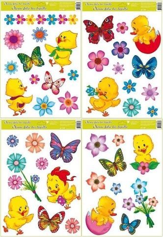 Okenní fólie 30 x 42 cm, kuřátka, květiny a motýlci