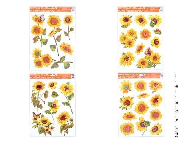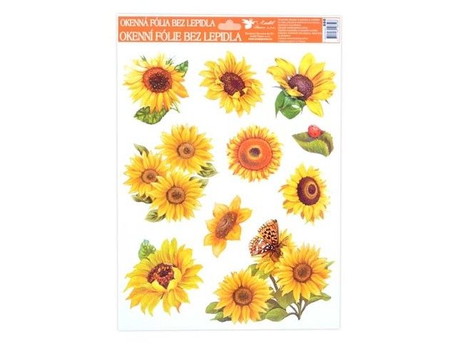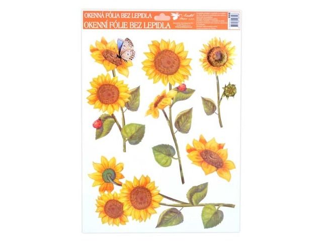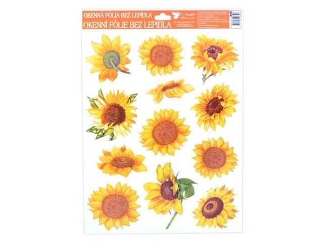 Okenní fólie - slunečnice - Vyzdobte si okno těmito krásnými samolepkami na okno. Vytvoří Vám kouzelnou atmosféru domova. NÁVOD: Sloupněte obrázek z podložky a umístěte na čisté, případně navlhčené sklo stranou, která byla na podložce. Obrázek elektrostaticky přilne. Fólie se snadno sloupne a dá se přemístit. Cena za 1 ks,