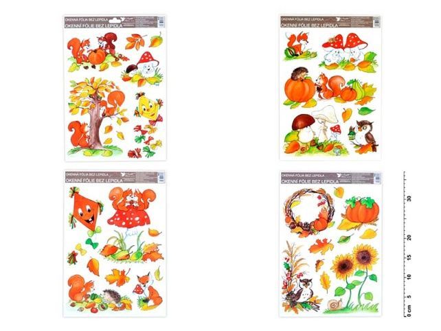 Okenní fólie - ručně malovaný podzim - sovy, veverky, lišky. Vyzdobte si okno těmito krásnými samolepkami na okno. Vytvoří Vám kouzelnou atmosféru domova. Na plochu přilnou elektrostaticky a nezanechávají tedy po sobě žádnou stopu. NÁVOD: 1. Sloupněte z podložky obrázek a umístěte na čisté, případně navlhčené sklo stranou, která byla na podložce. 2. Obrázek elektrostaticky přilne. 3. Folie se snadno sloupne a dá se přemístit. Uvedená cena je za 1 ks.