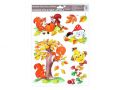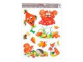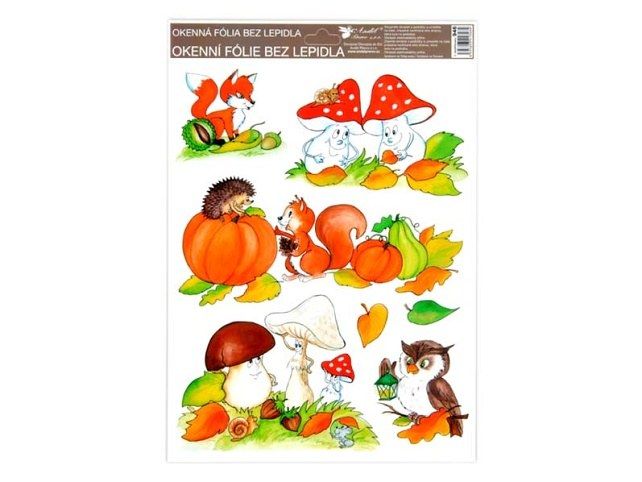 Okenní fólie 946 ručně malovaný podzim sovy,veverky,lišky 37x26 cm