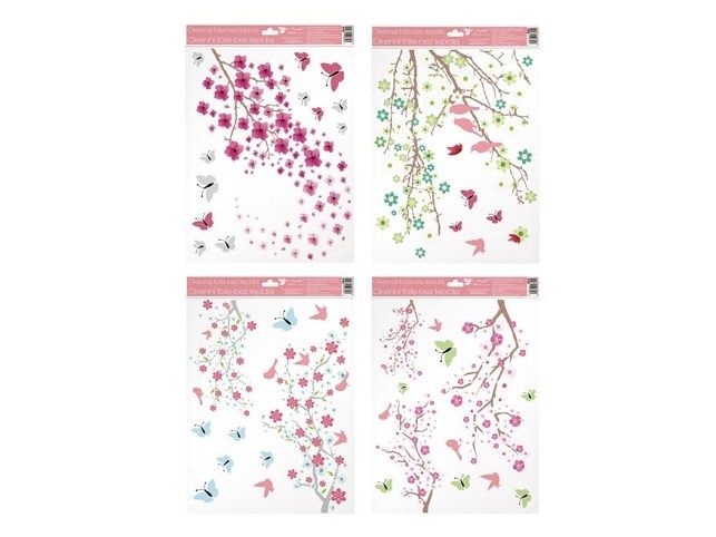 Okenní fólie větve v květu s glitry, 30x42 cm Uvedená cena je za 1 ks,