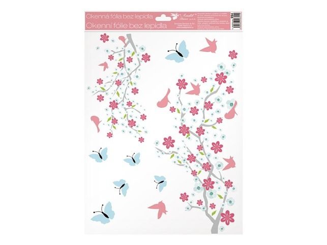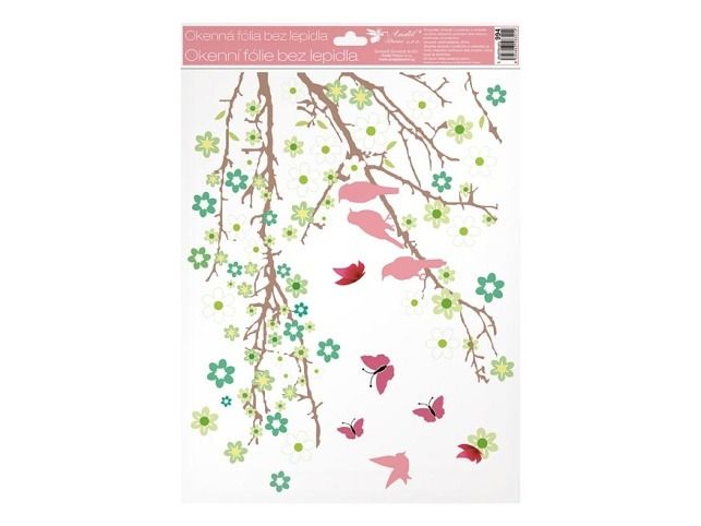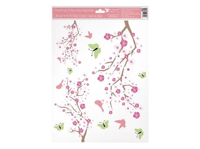 Okenní fólie 994 větve v květu s glitry, 30x42 cm