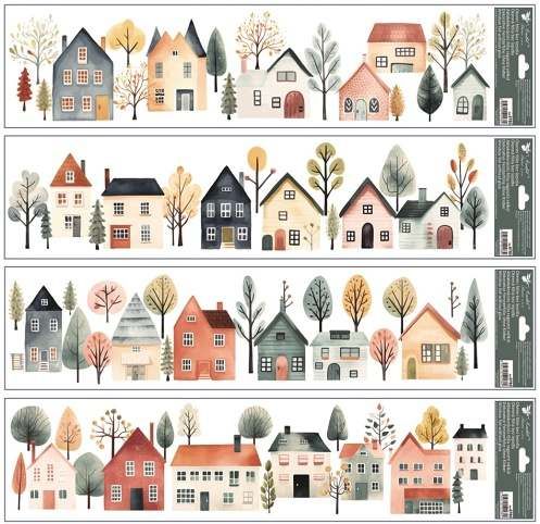 Okenní fólie barevné akvarelové domečky 60 x 22,5 cm