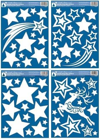 Okenní fólie bílá s glitry 29 x 41 cm komety a hvězdy