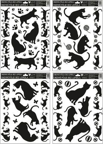 Okenní fólie - černé kočky - Vyzdobte si okno těmito krásnými samolepkami na okno. Vytvoří Vám kouzelnou atmosféru domova. NÁVOD: Sloupněte obrázek z podložky a umístěte na čisté, případně navlhčené sklo stranou, která byla na podložce. Obrázek elektrostaticky přilne. Fólie se snadno sloupne a dá se přemístit. Cena za 1 ks,