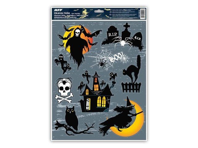 Okenní samolepka bez lepidla s halloweenskými motivy. Adhézní fólie.
