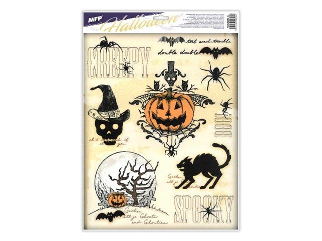 Okenní fólie - Halloween - Vyzdobte si okno těmito krásnými samolepkami na okno. Vytvoří Vám tu pravou halloweenskou atmosféru. NÁVOD: Sloupněte z podložky obrázek a umístěte na čisté, případně navlhčené sklo stranou, která byla na podložce. Obrázek elektrostaticky přilne. Folie se snadno sloupne a dá se přemístit. Uvedená cena je za 1 ks,