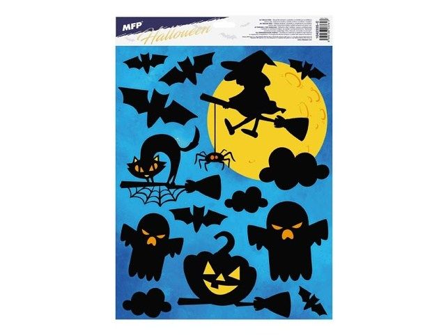 Okenní fólie - Halloween. Vytvoří Vám tu pravou halloweenskou atmosféru. NÁVOD: Sloupněte z podložky obrázek a umístěte na čisté, případně navlhčené sklo stranou, která byla na podložce. Obrázek elektrostaticky přilne. Folie se snadno sloupne a dá se přemístit. Uvedená cena je za 1 ks.