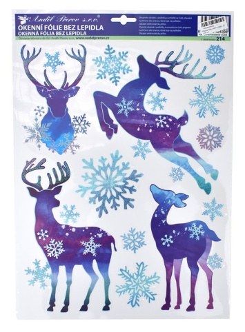 Okenní fólie, jeleni s glitry, 37 x 29 cm