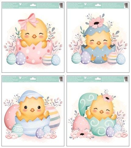 Okenní fólie kuřátka ve vajíčku s glitry 30 x 33,5 cm