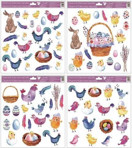 Okenní fólie modré a růžové slepičky, 30x33,5 cm
