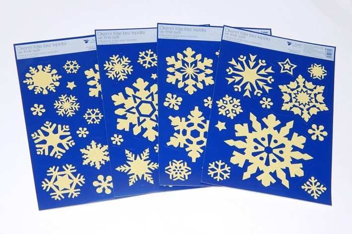 Dekorační okenní fólie svítící ve tmě. Naše okenní fólie neobsahují lepidlo. Na plochu přilnou elektrostaticky a nezanechávají tedy po sobě žádnou stopu. Vhodné jsou jakékoli hladké plochy, například sklo, výlohy, zrcadla nebo kachličky. Čisté - bez lepidla - opakovaně použitelné Použití: 1. Doporučujeme před použitím plochu očistit od prachu a jiných nečistot. 2. Fólie se snadno aplikuje sejmutím z podkladového papíru a umístěním na hladkou plochu. 3. Fólii přiložte a vyhlaďte případné bublinky rukou nebo suchým hadříkem. 4. Po použití je možné je uložit na původní podkladový papír a uskladnit na další sezónu.