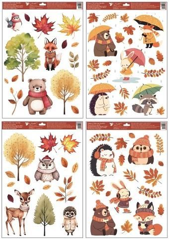 Okenní fólie roztomilá podzimní zvířatka 30 x 50 cm