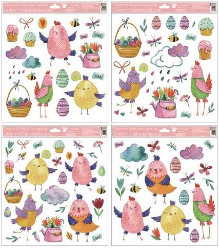Dekorační okenní fólie. Naše okenní fólie neobsahují lepidlo. Na plochu přilnou elektrostaticky a nezanechávají tedy po sobě žádnou stopu. Vhodné jsou jakékoli hladké plochy, například sklo, výlohy, zrcadla nebo kachličky. Čisté - bez lepidla - opakovaně použitelné Použití: 1. Doporučujeme před použitím plochu očistit od prachu a jiných nečistot. 2. Fólie se snadno aplikuje sejmutím z podkladového papíru a umístěním na hladkou plochu. 3. Fólii přiložte a vyhlaďte případné bublinky rukou nebo suchým hadříkem. 4. Po použití je možné je uložit na původní podkladový papír a uskladnit na další sezónu. Dodáváme v mixu motivů.