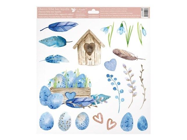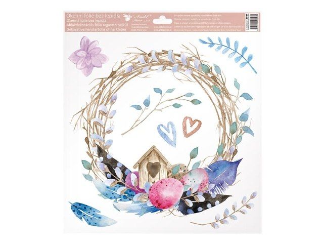 Dekorační okenní fólie s budkou. Krásné okenní fólie s obrázky vajíček, pírek a ptačích budek. Na plochu přilnou elektrostaticky a nezanechávají tedy po sobě žádnou stopu. Vhodné jsou jakékoli hladké plochy, například sklo, výlohy, zrcadla nebo kachličky. Čisté - bez lepidla - opakovaně použitelné. NÁVOD: 1. Doporučujeme před použitím plochu očistit od prachu a jiných nečistot. 2. Fólie se snadno aplikuje sejmutím z podkladového papíru a umístěním na hladkou plochu. 3. Fólii přiložte a vyhlaďte případné bublinky rukou nebo suchým hadříkem. 4. Po použití je možné je uložit na původní podkladový papír a uskladnit na další sezónu. Rozměr: 300 x 335 mm Uvedená cena je za 1 ks.