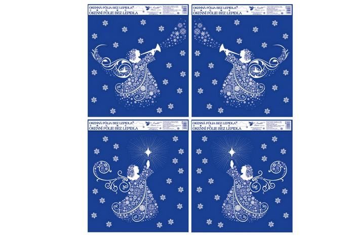 Okenní folie s glitrem anděl z vloček 33,5x30cm.