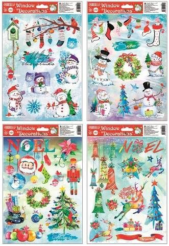Okenní fólie s glitrem barevné Vánoce 30x20 cm