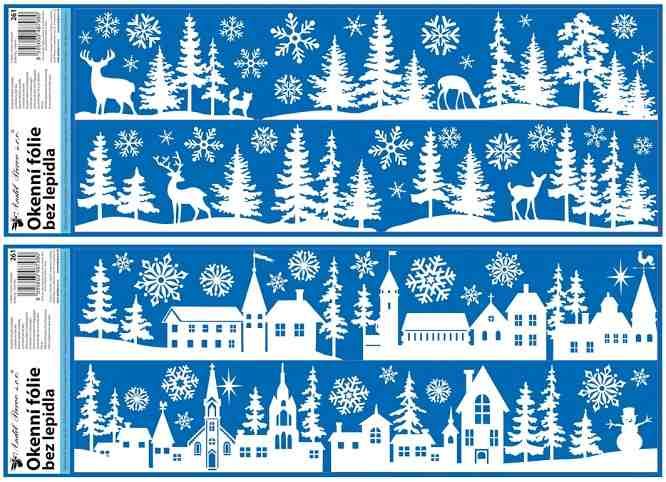 Okenní fólie s glitrem jelen, město 59,5 x 21 cm