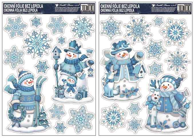 Okenní fólie s glitry 42x30 cm, sněhuláci