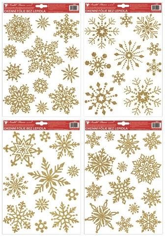 Okenní fólie s glitry zlaté Vločky 28 × 22 cm