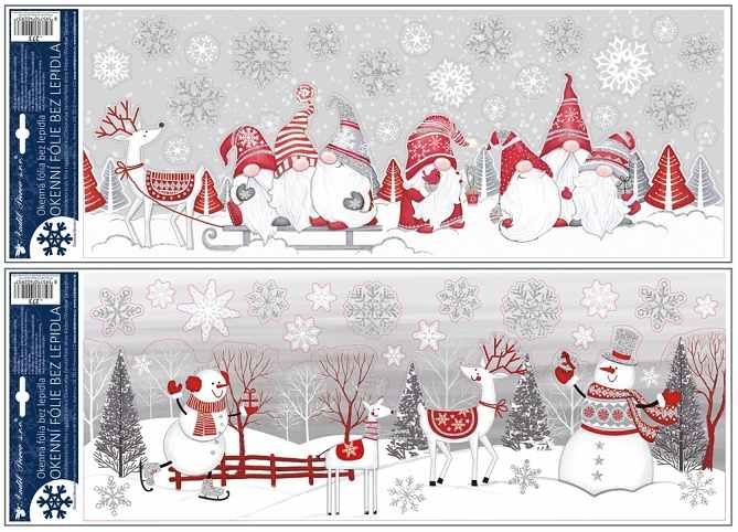 Okenní fólie skřítci a sněhuláci s glitrem 21 x 59,5 cm