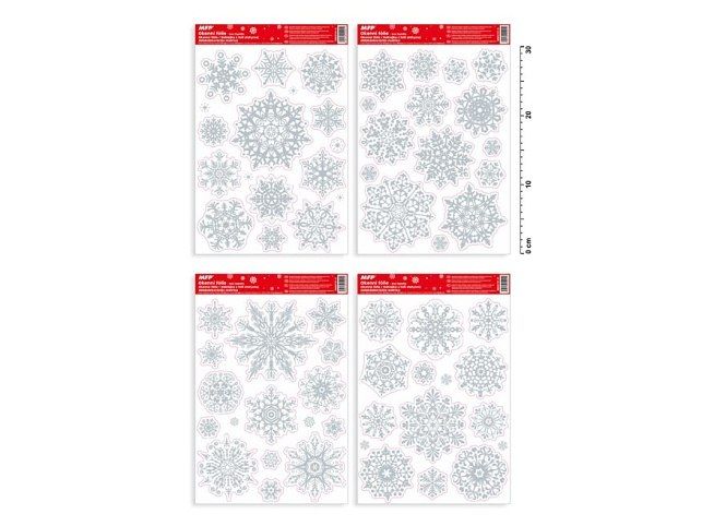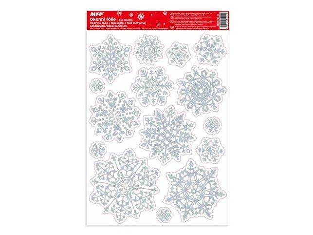 Okenní fólie - vánoční bílé vločky s flitrem - Vyzdobte si okno těmito krásnými samolepkami na okno. Vytvoří Vám kouzelnou atmosféru domova. NÁVOD: Sloupněte z podložky obrázek a umístěte na čisté, případně navlhčené sklo stranou, která byla na podložce. Obrázek elektrostaticky přilne. Folie se snadno sloupne a dá se přemístit. Uvedená cena je za 1 ks,